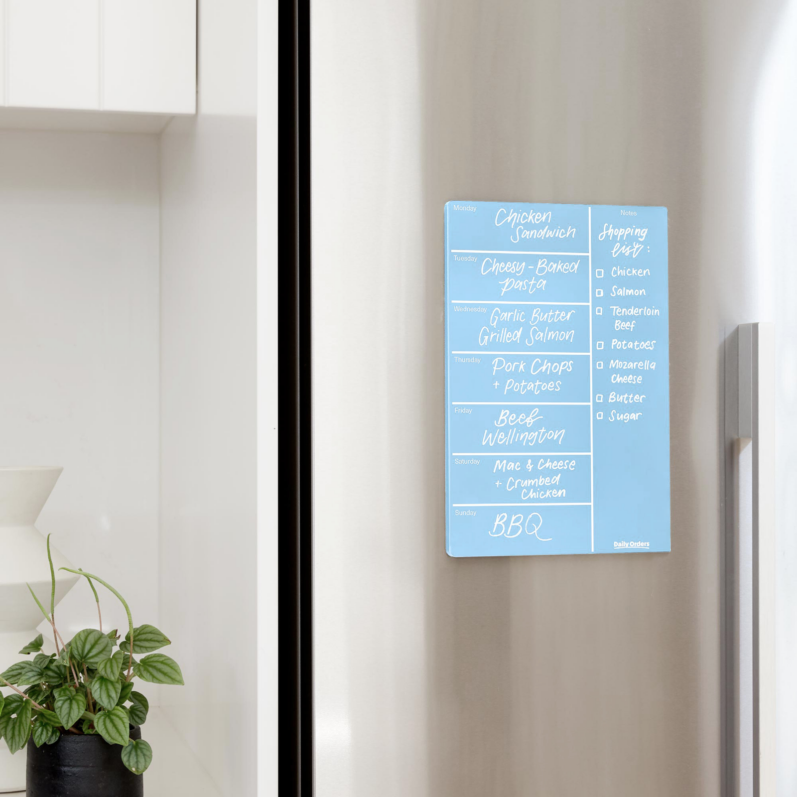 Exposure to sunlight can cause the colours in your planner and the liquid chalk ink to fade over time. Your acrylic weekly planner is only designed for indoor use.